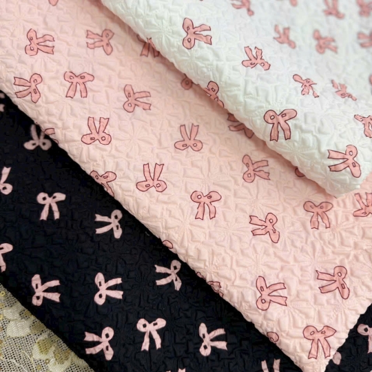 Vải xốp in nơ là dòng vải có bề mặt xốp nhẹ, sờ vào mềm tay, khi mặc tạo cảm giác thoải mái và thoáng mát. Họa tiết nơ in đều trên nền vải giúp sản phẩm trông dễ thương, trẻ trung nhưng không quá cầu kỳ.